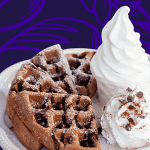 Prepara deliciosos waffles de chocolate con avena, plátano y mantequilla de almendras. Una receta fácil, nutritiva y perfecta para disfrutar con chantilly y chispas de chocolate.