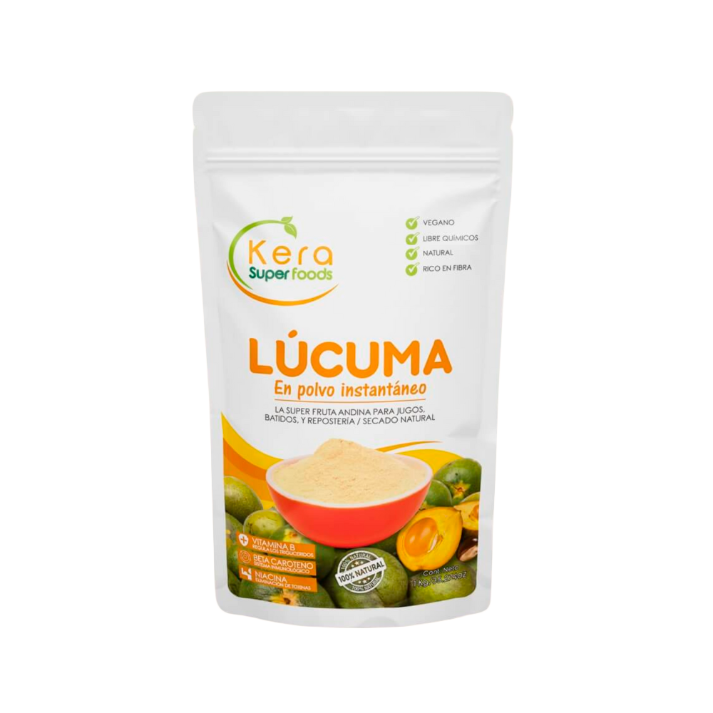 La lúcuma en polvo Kera Superfood es un superalimento 100% natural obtenido de la pulpa deshidratada de lúcuma madura, cuidadosamente procesada para conservar su sabor, aroma y valor nutricional. Reconocida como el “oro de los Incas”, la lúcuma es uno de los ingredientes más representativos de la biodiversidad del Perú y un endulzante natural ideal para una alimentación saludable.